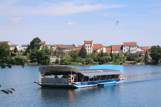 Das Schiff "Steffi" der Strausseefähre