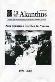 17:19, 13. Apr. 2014 Akanthus-Mitteilungen-13-2003.jpg (Datei) 634 KB Schriftenreihe Akanthus für Regionalgeschichte und Denkmalpflege; Foto von Akanthus-Verein Manfred Ahrens {{Copyright}} Kategorie:Bild (Manfred Ahrens 1
